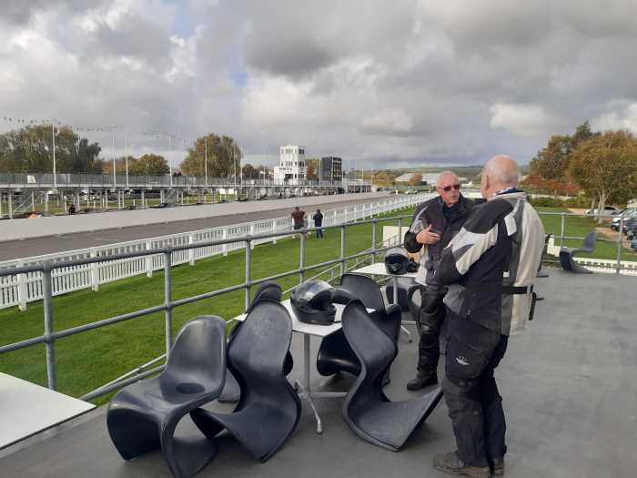 We went for a mid-week ride and stopped off for lunch in the cafe at Goodwood motor racing circuit. The cafe has balcony overlooking the main straight and pitlane. There was a car trackday in progress which we could watch from the balcony.