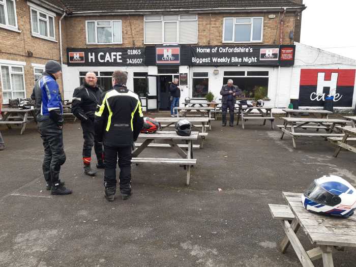 A Sunday ride-out to the H Cafe at Berinsfield. This is a popular biker cafe with a big car park and a motorcycle accessories shop next door.