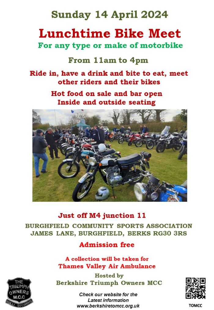 We are having a Lunchtime Bike Meet on Sunday 14 April 2024 from 11am to 4pm at the BCSA. It’s a great opportunity to meet other riders, see their bikes and have lunch and a drink . All motorcycles and riders are welcome.